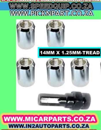 • WHEEL NUT 6PCS-SET WITH KEY 14MM X 1.25MM